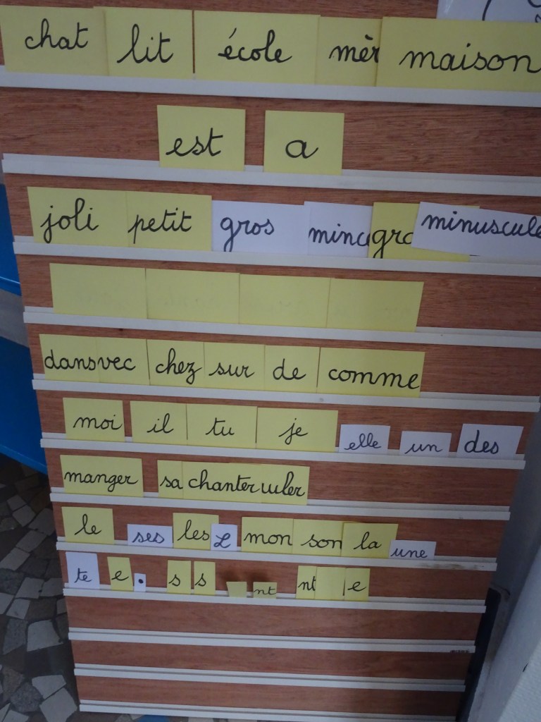 Les enfants aiment travailler de cette façon, ils rangent eux-même les étiquettes à la fin de l’exercice, ce qui prouvent qu’ils ont parfaitement repéré les natures des mots.