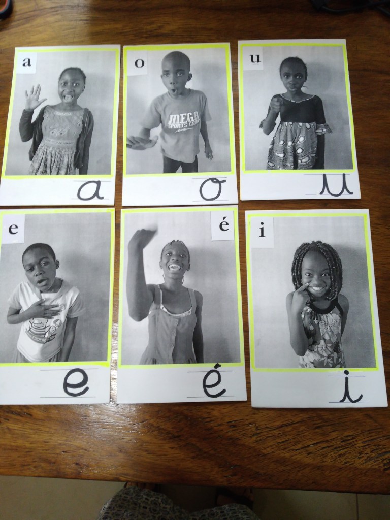 Le blog est un bon outil d’échanges, même si des km nous séparent. C’est ainsi qu’est arrivée dans la boîte d’avis du blog une demande d’info et de partage au sujet de Grosselin. Quelques mails et quelques semaines plus tard, voilà les photos d’un bon début. Certes, les voyelles ne sont pas toutes des filles, mais la modification est en cours, et la phonomimie n’est pas en miroir, mais les débuts sont prometteurs.