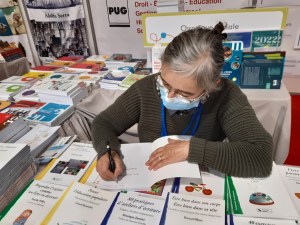 Après les années sans salon, ce fut bien agréable de rencontrer les professionnels de l’enfance, de feuilleter des livres passionnants, et, pourquoi pas de signer des dédicaces aux heureux acheteurs des livres présentant les outils de « Lire Écrire Chanter ».